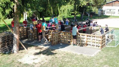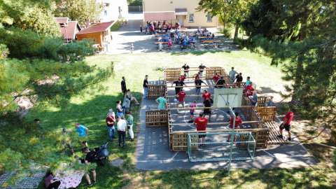 Zu der geplanten Bucket Challenge kam es leider nicht, weil die Kinder so viel Spaß hatten und einfach nicht zu greifen waren, da wurden die Eimer bereits zum matschen und spritzen anderweitig eingesetzt.